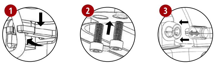 - Orientujte spodní část sestavy páky nad horní část vodítka drátu a sešroubujte základnu a sestavu páky dvěma šrouby. Zajistěte zarovnání páky a utáhněte ji.