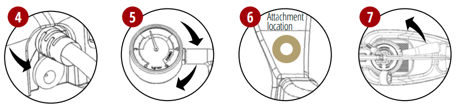 5. Připevněte tlakoměr k dříku zašroubováním ve směru hodinových ručiček. Zašroubujte jej úplně a poté natočte čelo manometru svisle.